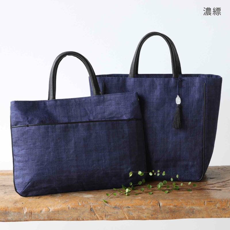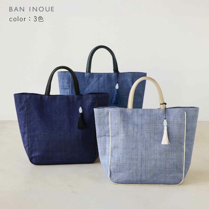 先染め竹手バッグ(大)