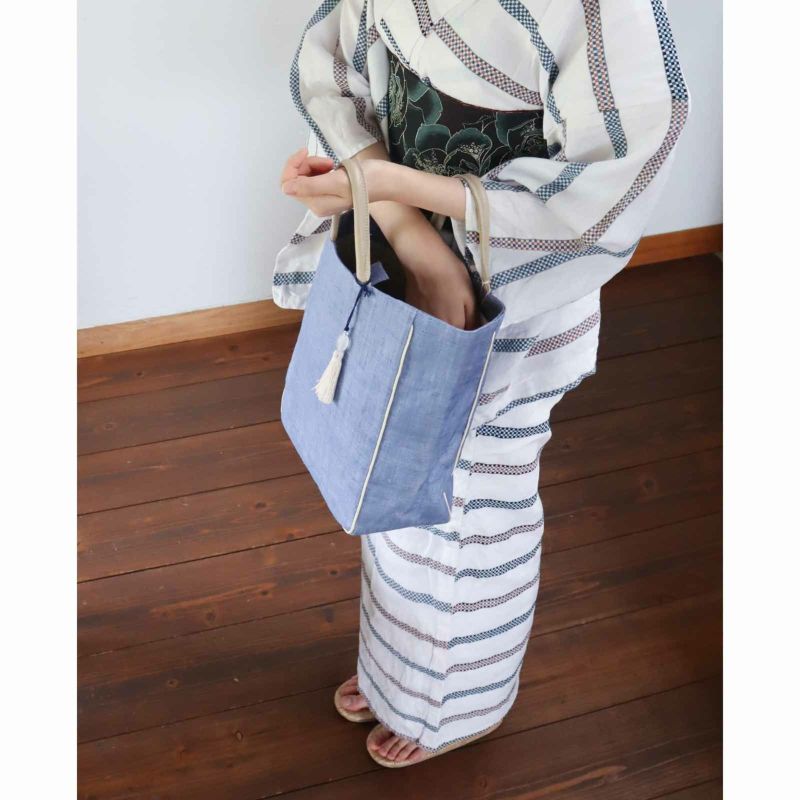グレーズリネン竹手バッグ(小)