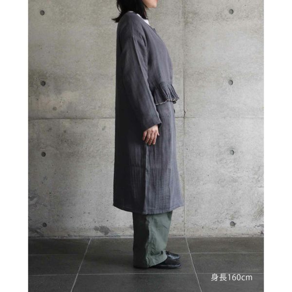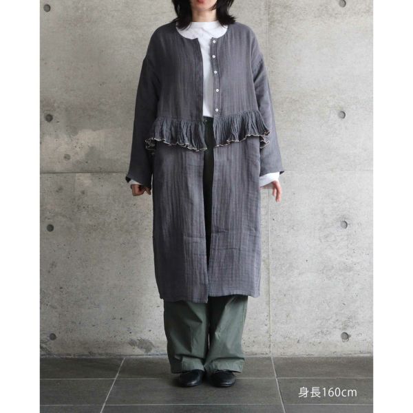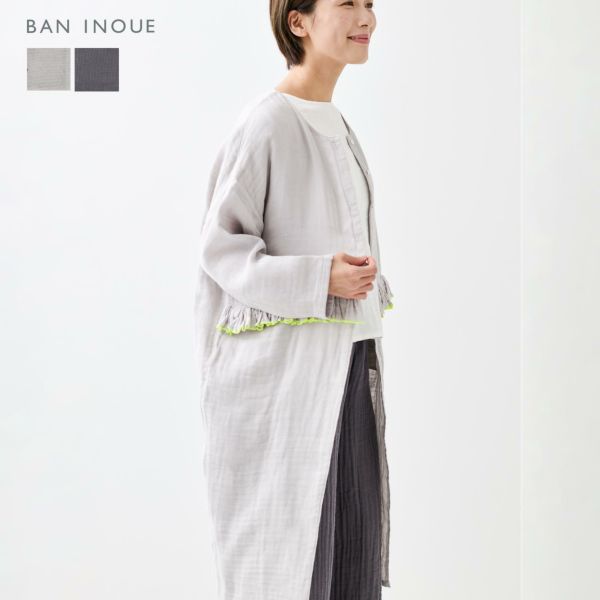 綿100%の蚊帳生地をつかった長袖ハオリ。色糸でふちどったフリルを、デザインのポイントとしてあしらいました。