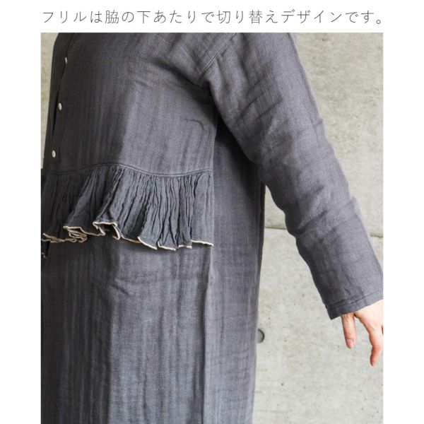 ・ウエストあたりまで貝釦で留めることができます(ボタンは留めると隠れる比翼風デザイン)