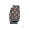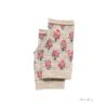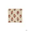 インドや中国を経て古く日本に渡来した更紗紋様。真っ赤な鶏頭の花をモチーフに、背景には梨地と呼ばれる不規則な点紋様を施しました。よく見ると、それぞれの花の形や向きが違っていて、テキスタイルのなかにリズムが生まれ、どこか華やぐ気持ちに。黄色の生地を合わせたアイテムは、より可憐な雰囲気が際立ちます。