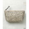 正倉院に納められている、フェルト状の敷物「花氈」の紋様に由来。繊細な蓮の花と蔓。しなやかな曲線が美しい紋様です。絡み合う蔓紋様が、レースのような華やかさ。麻の生成りの色とも調和する茶系をベースに、青みの差し色がポイントになっています。桜色の生地と合わせたバッグやランチョンマットは、少し柔らかな印象が加わります。