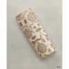正倉院に納められている銅に鋳金した蓋付き容器の透かし彫り紋様。全面にめぐる豪華な蔓草花が目を引きます。織り麻本来の生成色にも調和する灰色の濃淡で複雑な文様を表現し、モダンな印象に。薄いグレーの生地と合わせると、凛とした雰囲気が引き立ちます。