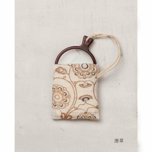 正倉院に伝わる唐草文様の包装紙でお包みします。サイズの関係上、小さな雑貨単品やバッグなどはお包みできません。