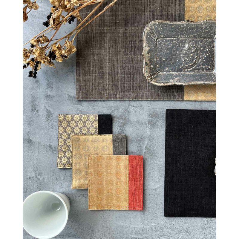名物裂のしっとりした柄と手紡ぎ・手織り麻が組み合わさった上質なこだわりの布コースターです。