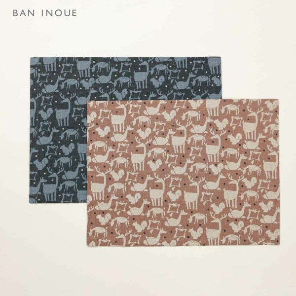 鹿の親子、リス、ムササビ…豊かな自然の中で生きるかわいい動物たちがのびのびと暮らす様子を表現しています。