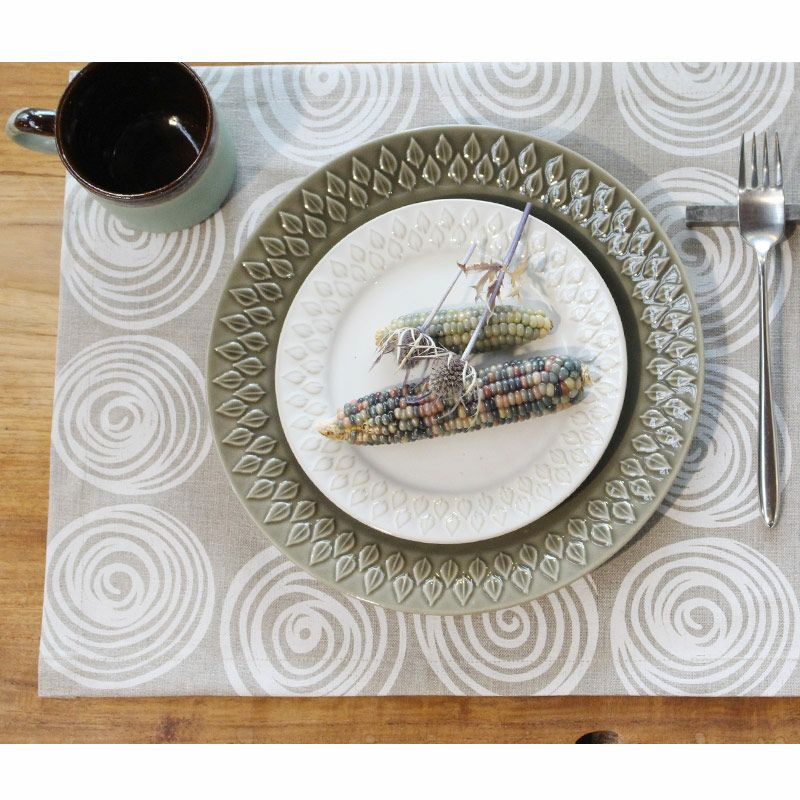 バン好きの私に、奈良に住む夫の母が「キビ」のランチョンマットをプレゼントしてくれました。 生地もしっかりしているし、色も鮮やかなのに優しくて、料理が美味しそうに見えますよ。 その後自分で「シダ」も購入しました。 「キビ」と重ねて使っても可愛いです。