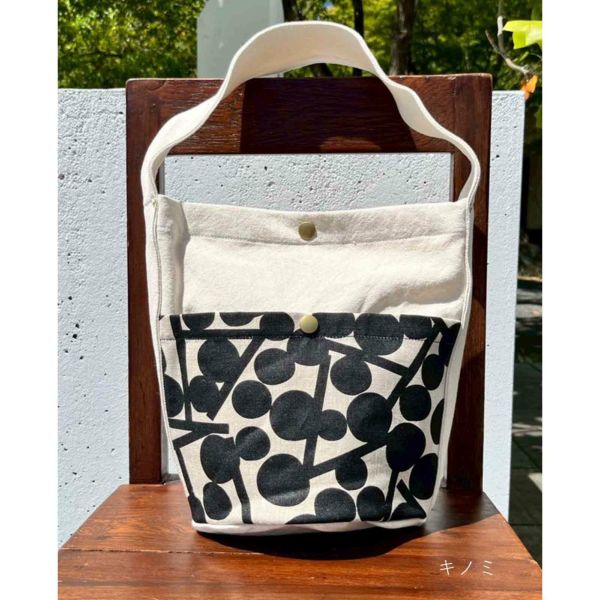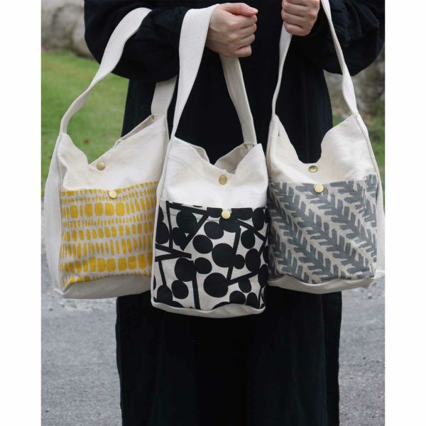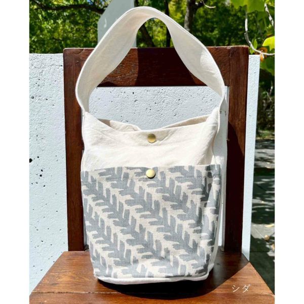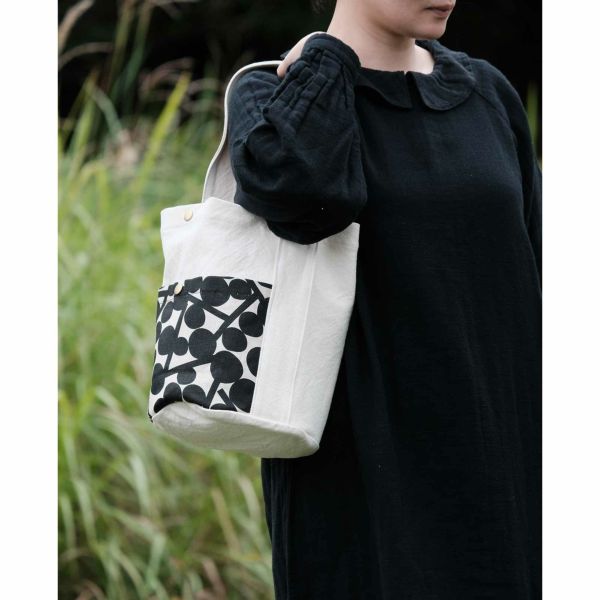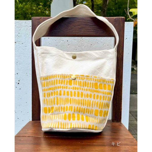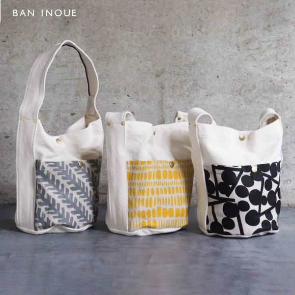 今回こまのぐさんのオリジナル帆布バッグ「V.D.L.C.」を、BAN INOUEの定番「新ビオシリーズ(リネン)」の生地をアクセントに使用して、持ちやすく丈夫なバッグをつくりました。