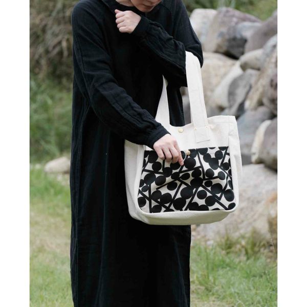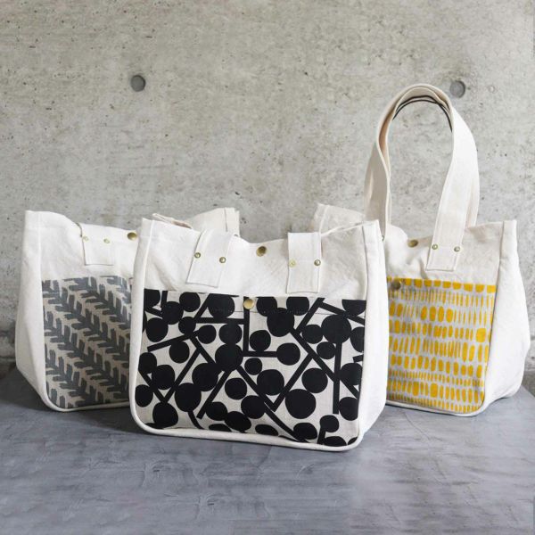 今回こまのぐさんのオリジナル帆布バッグ「V.D.L.C.」を、BAN INOUEの定番「新ビオシリーズ(リネン)」の生地をアクセントに使用して、持ちやすく丈夫なバッグをつくりました。