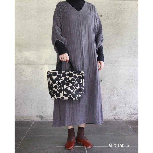 ぽわんと膨らんだ袖口がかわいい、 マキシ丈のワンピース。 細かなタックやAラインシルエットが、 体型をふんわりとさりげなくカバーしてくれます。
