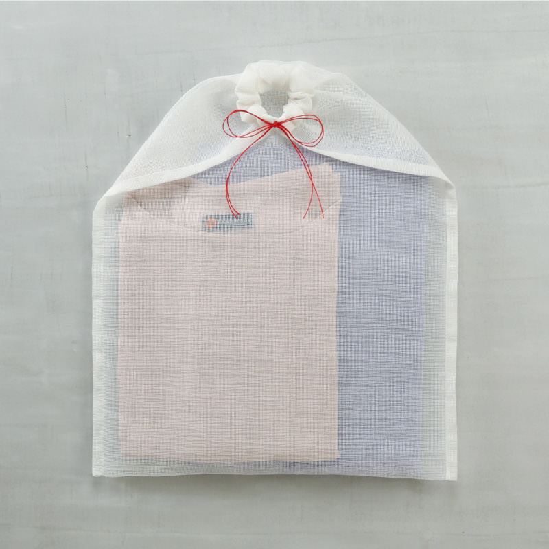 蚊帳製のギフトバッグと水引きで華やかにお包みします。気軽でおしゃれな贈り物におすすめです。