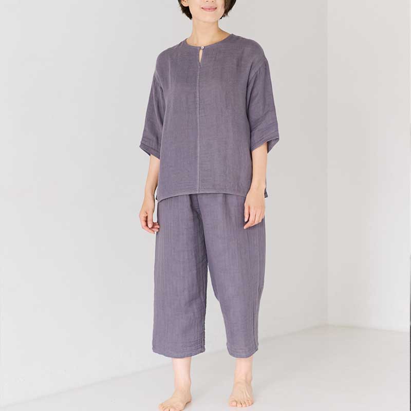 通気性・吸放湿性に優れた素材である蚊帳で仕立てたパジャマは、