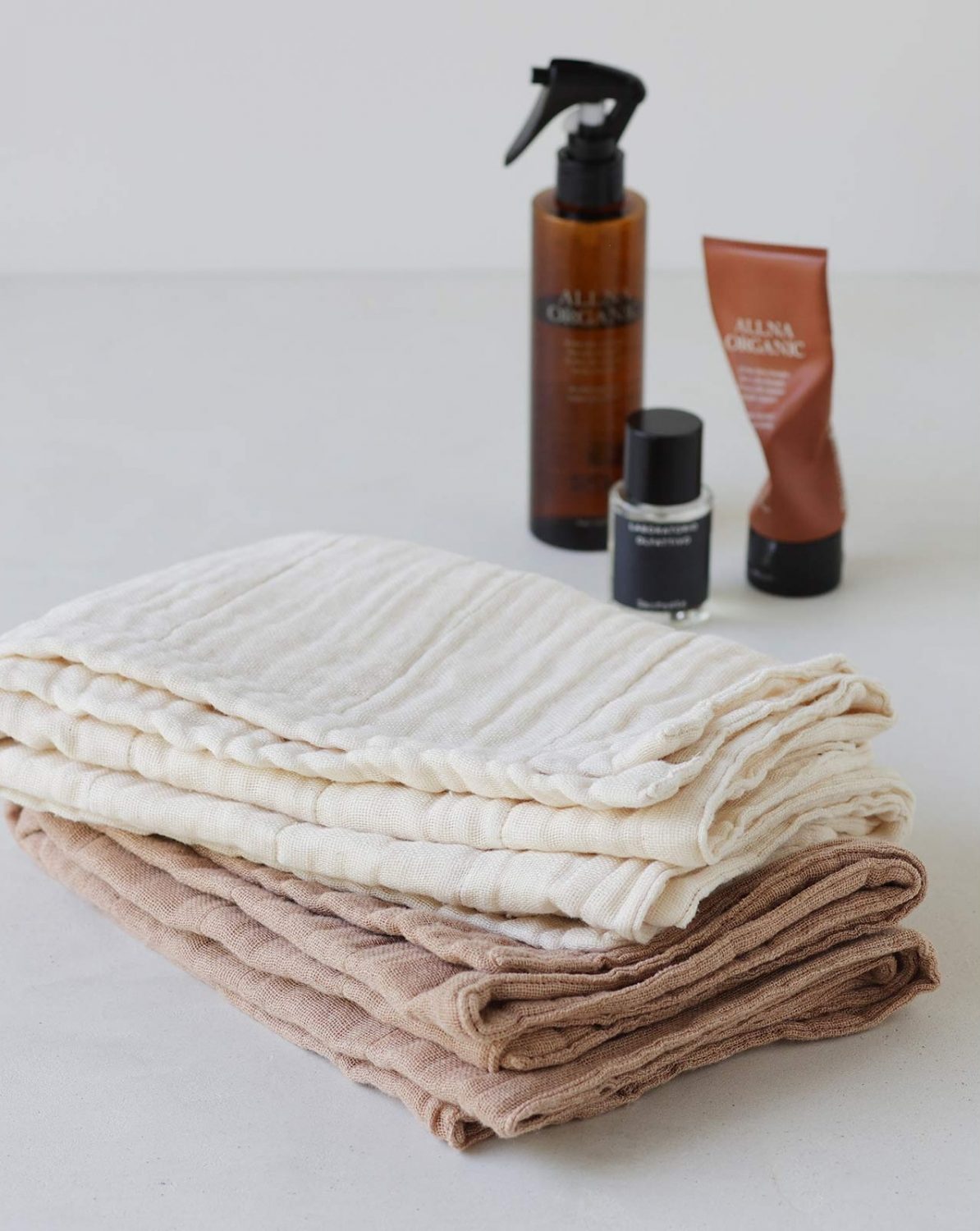 綿特有のぬめり気が心地よく、毎日の身支度やバスタイムを幸せな時間にしてくれます。