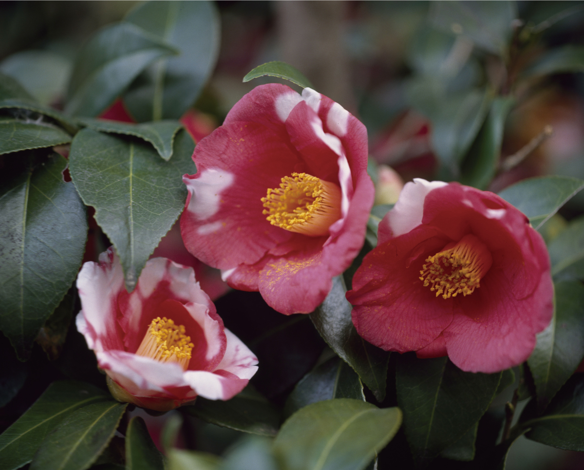 写真は、井上博道による「のりこぼし」です。この椿の名前の由来は、古都・奈良に春を呼ぶ行事、東大寺のお水取り(修二会)に関係しています。