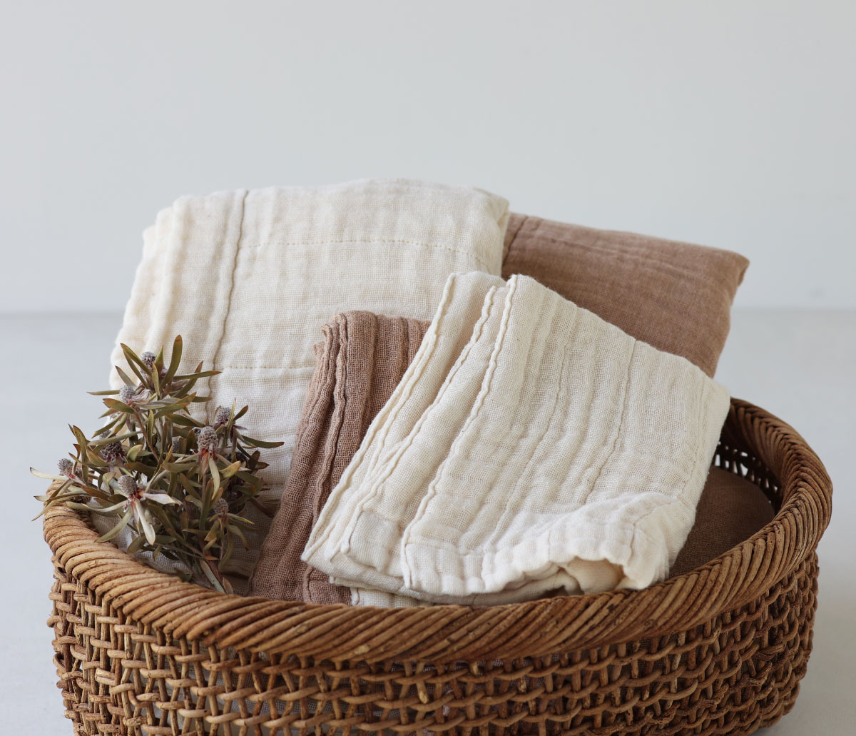 季節のおすすめは、オーガニックの蚊帳タオルです。