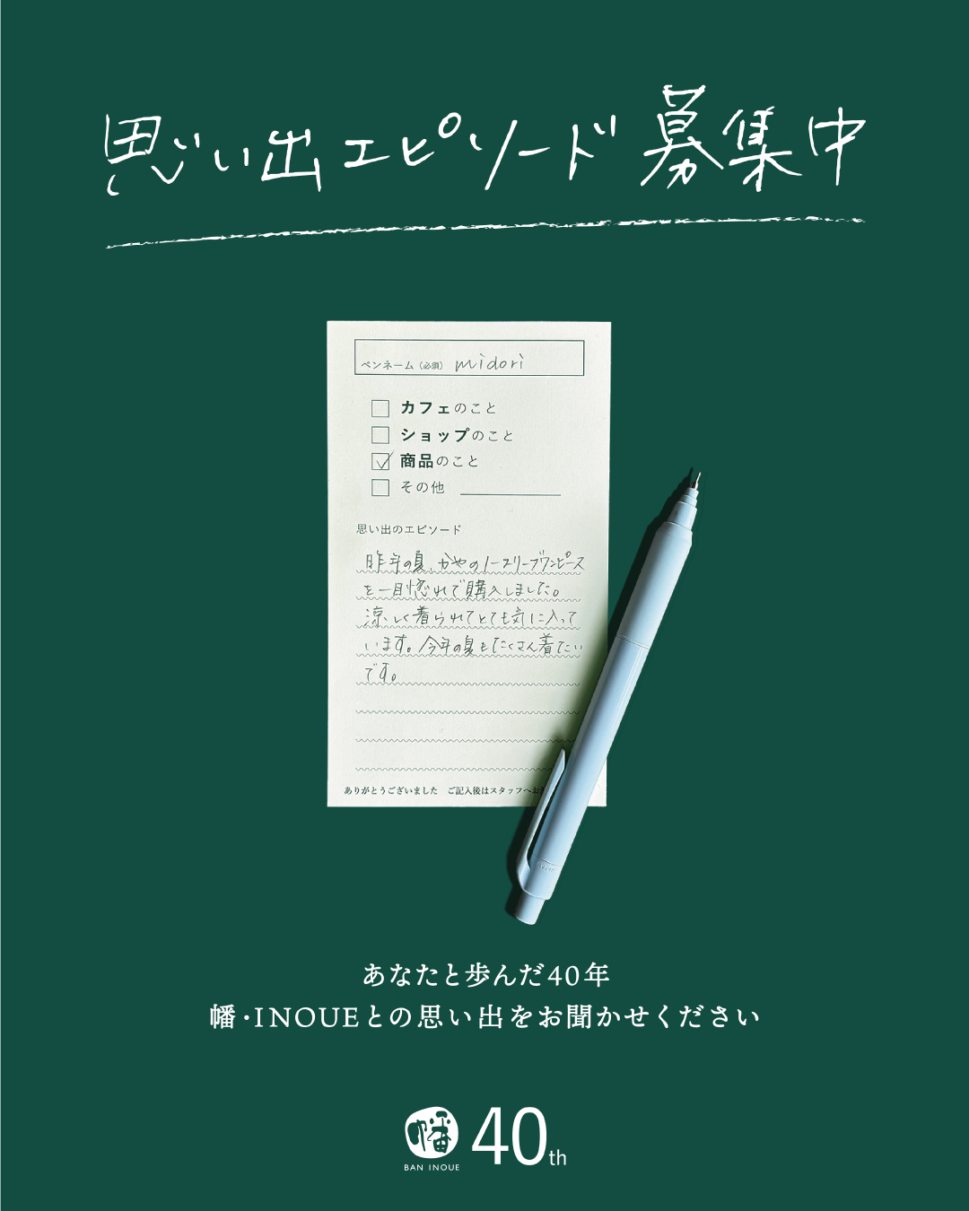 *お寄せいただいたエピソードの中からいくつかをWEBページ・Instagram・店頭に掲載するなど、媒体等で活用させていただく場合があります。