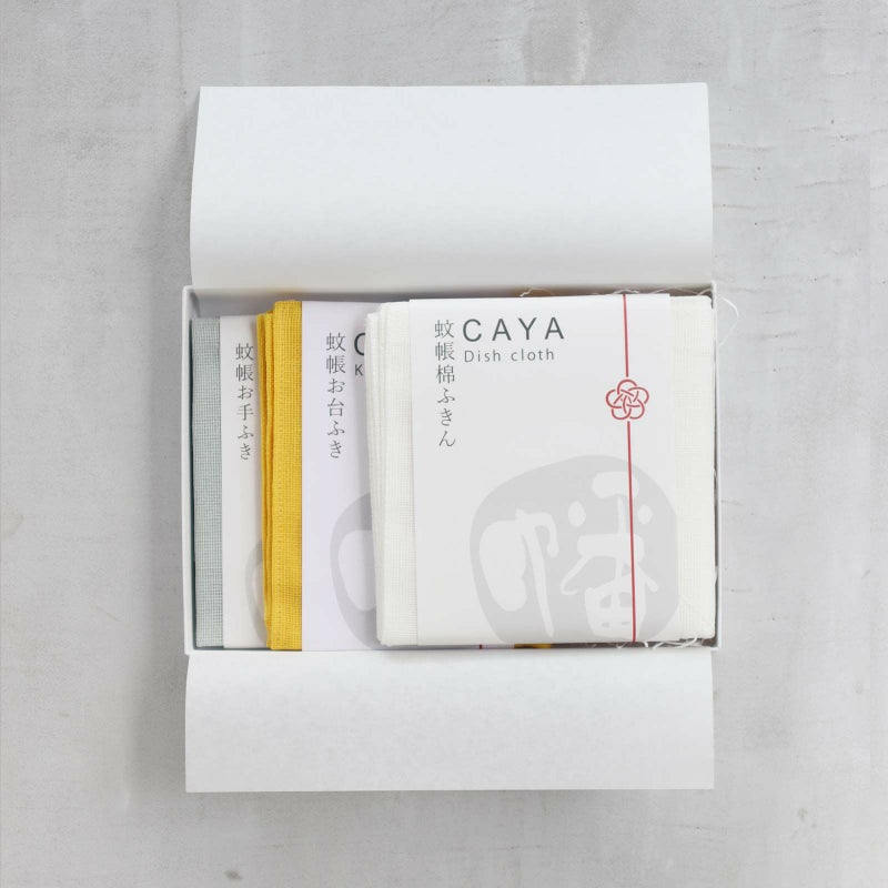 贈り物ふきん3枚セット (お手ふき・お台ふき・かや棉ふきん)